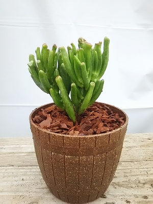 プラスチックのたる鉢入りで高さ10、幅12センチの鉢です。