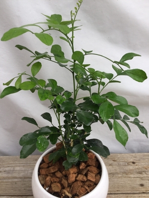 夏にジャスミンの香りの白いお花が咲くシルクジャスミンの陶器鉢です
