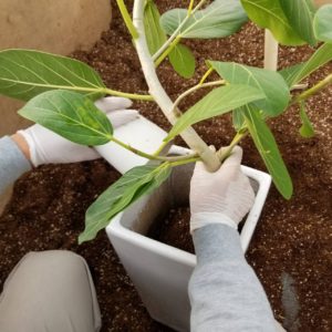 植え替えた直後は、根が土にうまく定着していないので背丈の高い植物であればグラつくことがあります。