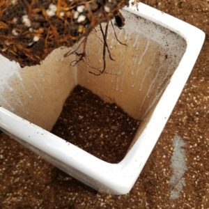底に鉢底石をならべておくと排水がよくなる効果があります