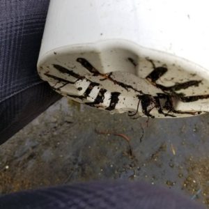 3.根についている土を手でほぐして落し、根の先端が傷んだり、黒ずんだりしていればハサミで切り落とします